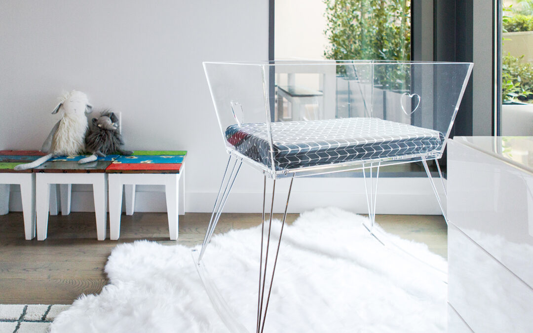 Acrylic bassinet in a Little Crown Interiors nursery