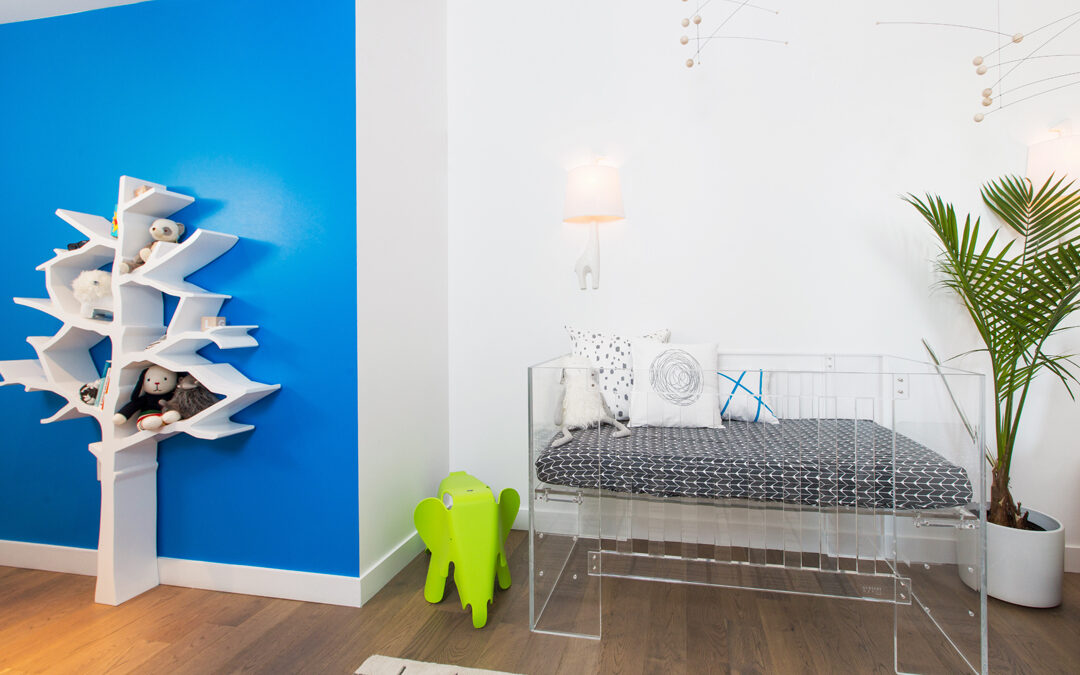 white and blue modern nursery