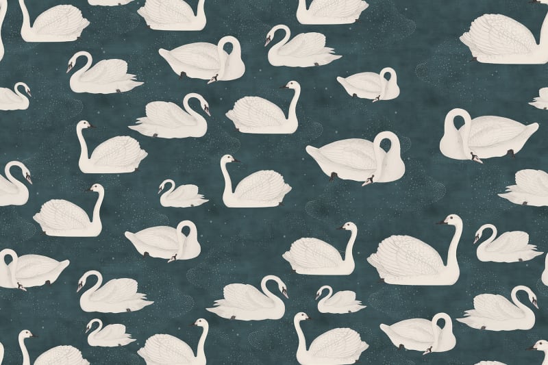When designing with black, it’s important to balance the space with other lighter colors. Since the black swan wallpaper is used as an accent wall, the rest of the walls can be a light gray or white so the room doesn’t feel super dark. I chose a black dresser, which I imagine would sit on a different wall, one that’s painted a lighter color.