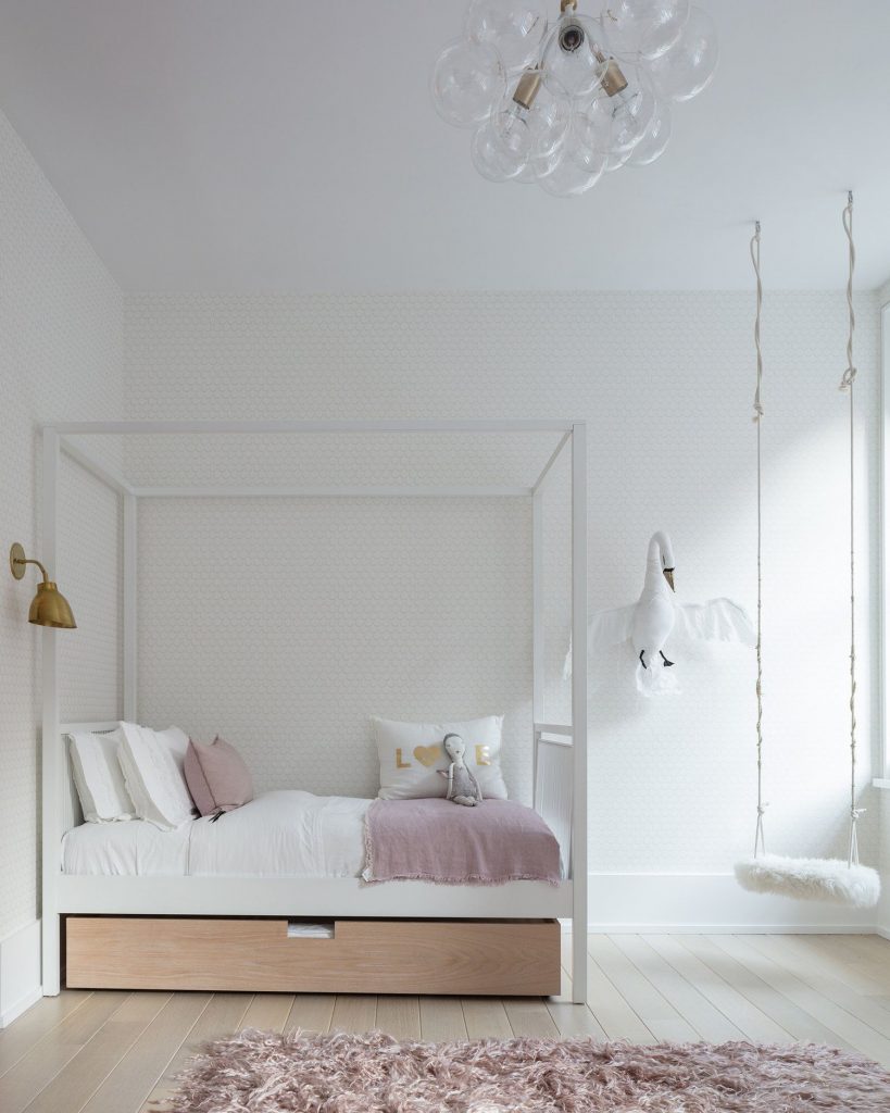 OK, so this isn’t a nursery, but the minimalist whimsy of it is adorable! There isn’t a lot of furniture or decor in this space, but all the pieces are intentional and serve the overall design. Clutter is hidden in the drawer under the bed, and the space feels fresh and relaxing.